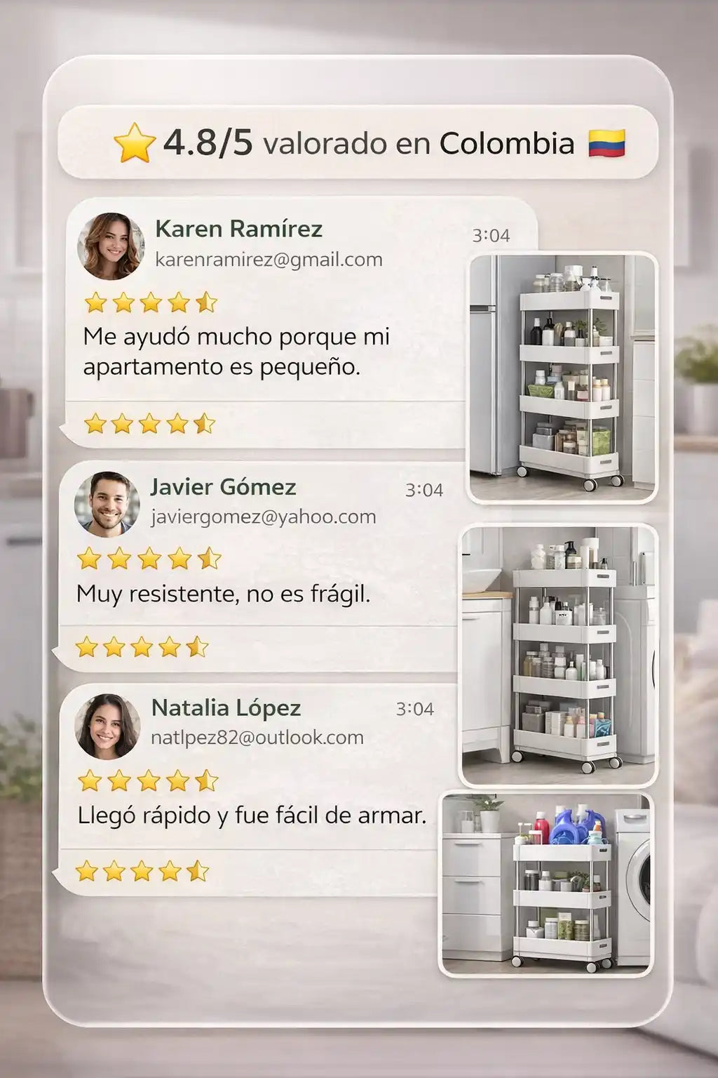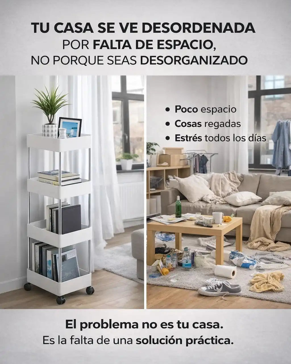 Sí. Está diseñado especialmente para aprovechar el espacio vertical y entrar en lugares estrechos como entre la nevera y la pared, baños pequeños o lavaderos. Es ideal para apartamentos y casas colombianas donde cada espacio cuenta.